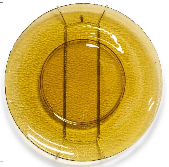 Ideal for displaying round or oval scalloped plates or tiles, the 14″-20″ (35cm-51cm) Brass Plate Wire can hold items up to 2 lbs (1kg) on the wall. The durable, brass plated copper wire hangers are connected by a flexible coiled lacquered iron spring that easily conforms to most plates and features clear coated plastic tips and sleeves to prevent scratches. Includes hook and nail for hanging.