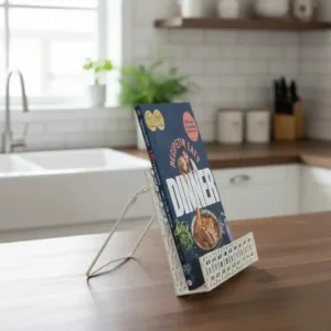 This petite book stand is perfect for cookbooks. It features a folding easel back and 2″/5cm deep shelf.