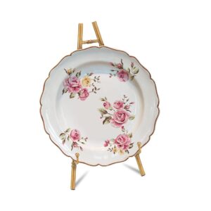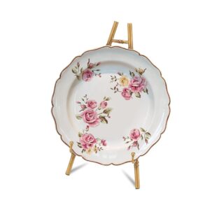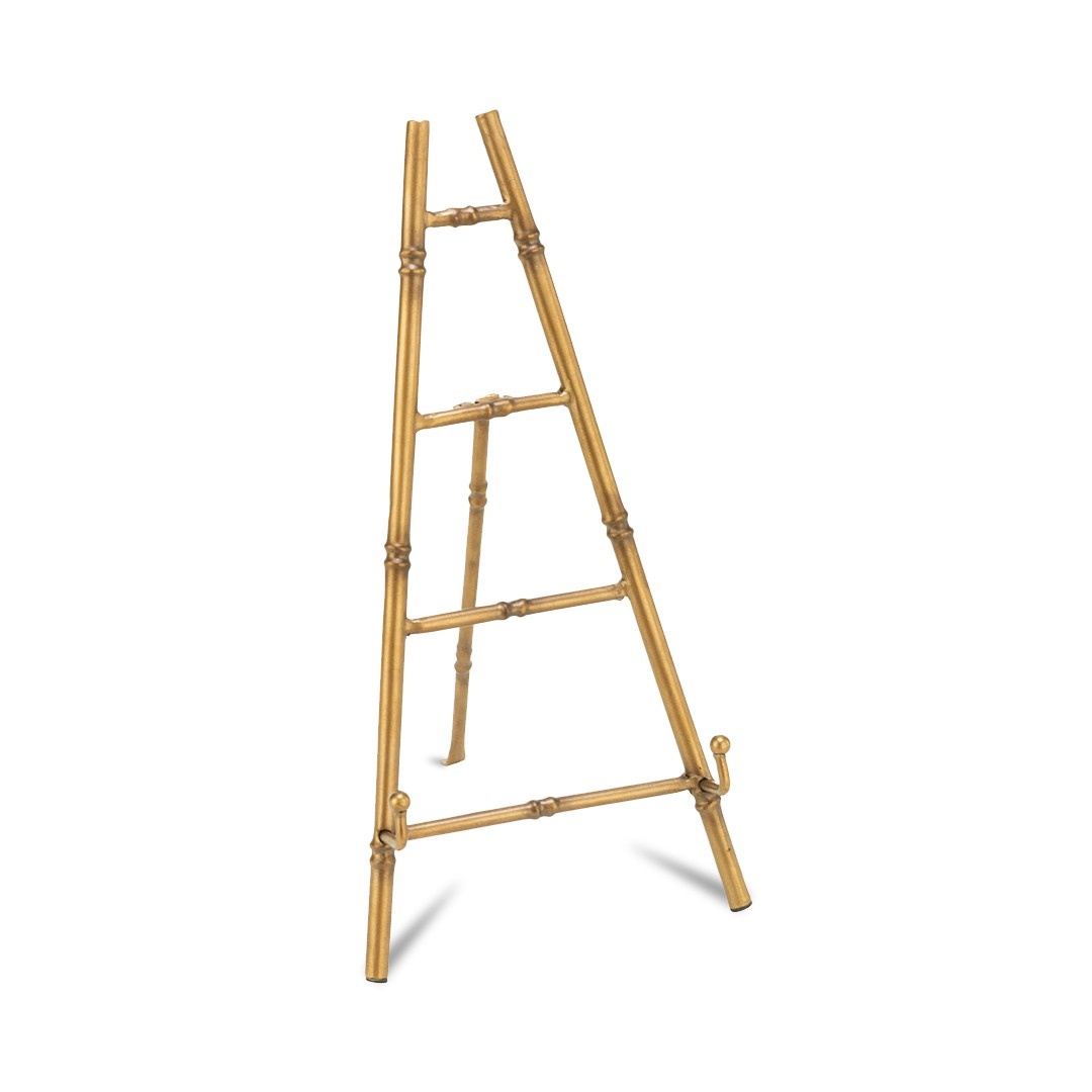This beautiful burnished gold-painted easel features a bamboo motif for an updated look that pairs well with traditional or modern decor. Made of metal. Features rubber pads on feet for scratch-free display.